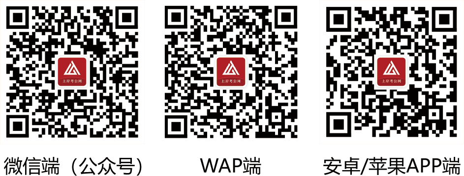 ◆移动端使用方法:通过手机扫描下方二维码,关注微信公众号使用“上岸考公网”微信端,或下载APP使用。请注意:使用移动端时,须先通过校园网IP注册账户(该账户将自动升级为不限IP的移动端账户),并以该账户登录移动端。
