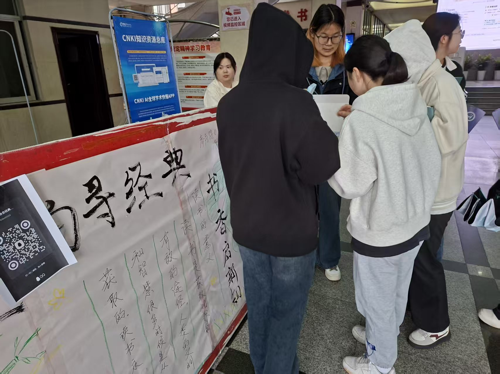 经典图书推荐活动同步开展,旨在引导师生回归经典文本,在阅读中提升人文素养、丰盈精神世界。活动采用“线下宣传+线上互动+公众号推送”的多元形式,搭建起师生分享交流经典的桥梁。线下环节,工作人员现场为师生推荐优质图书。线上开通推荐通道,师生可通过扫描二维码填写推荐书单,分享自己心中的经典好书及阅读感悟。活动期间,图书馆官方微信公众号特别设置“人生之书”推荐栏目,进一步调动了师生的参与热情。截至活动结束,共收集师生推荐的经典图书近400本。